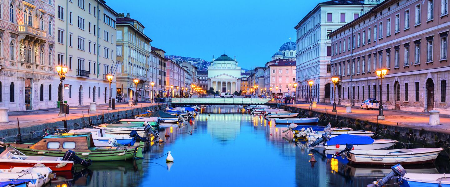 Triest liegt im Nordosten Italiens, an der Adriaküste, in der Nähe der Grenze zu Slowenien. Geografisch ist die Stadt von den malerischen Hügeln des Karstgebiets umgeben und bietet einen atemberaubenden Blick auf das Meer. Triest ist gut erreichbar über das Straßennetz und den internationalen Flughafen Triest, der nur etwa 30 Kilometer vom Stadtzentrum entfernt ist. Die zentrale Lage macht Triest zu einem idealen Ausgangspunkt für Erkundungstouren in die umliegenden Regionen, einschließlich der nahegelegenen Städte wie Gorizia und Piran sowie der beeindruckenden Naturparks in der Umgebung. Die Kombination aus maritimer Schönheit und kulturellem Reichtum macht Triest zu einem attraktiven Ziel für Reisende, die die Vielfalt und Geschichte dieser einzigartigen Stadt entdecken möchten.